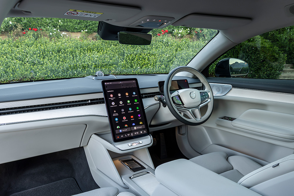 We embarked upon the snaking KwaZulu-Natal test route from Durban to the Natal Midlands in the Ultra derivative and this flagship model (with standard 360-degree camera system) impressed with its supersmooth ride quality and quiet comfort – mostly attributable to its adaptive dampening system and dual-chamber air suspension (as also found in the EX90) – although its 21” tyres sometimes caused it to tramline over undulated road surfaces.