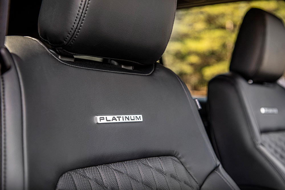 While the Everest offers a 157kW/500Nm 2.0-litre bi-turbo diesel engine in other models, the Platinum variant is powered exclusively by the 3.0-litre V6 turbodiesel, also found in the Ranger. Generating 184 kW of power at 3,250 rpm and 600 Nm of torque between 1,750 rpm and 2,250 rpm, the V6 is both smooth and exceptionally powerful and, paired with Ford’s 10-speed torque converter automatic transmission, delivers a refined driving experience befitting the Platinum’s luxurious interior.