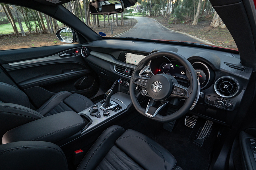 However, look again, and you’ll notice that the Veloce will get you from zero to 100 km/h in just 5.7 seconds, putting it firmly in hot hatch territory. Indeed, the way the Stelvio Veloce performs is anything but ordinary, living up to the looks and the badge as it’s a genuinely engaging car to drive.