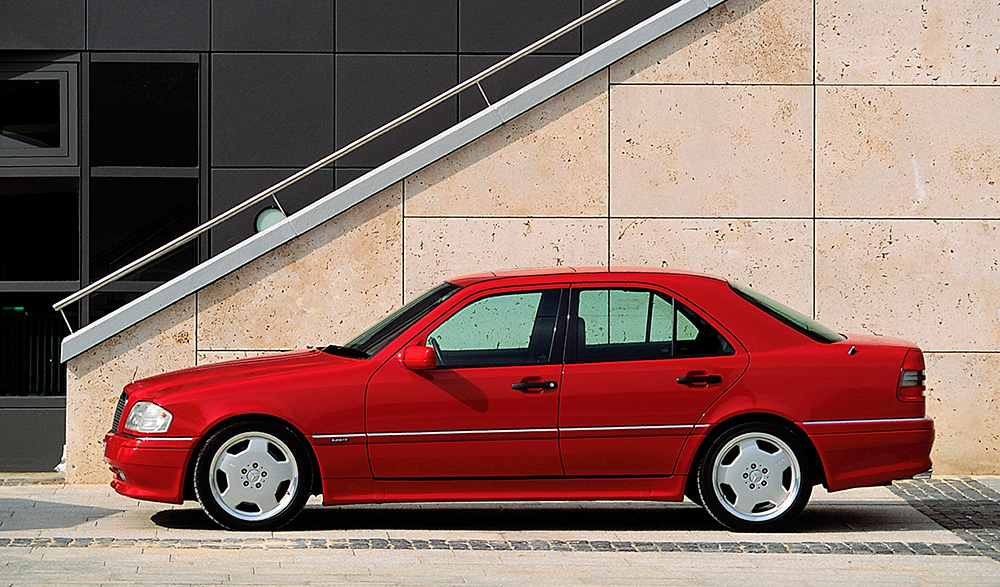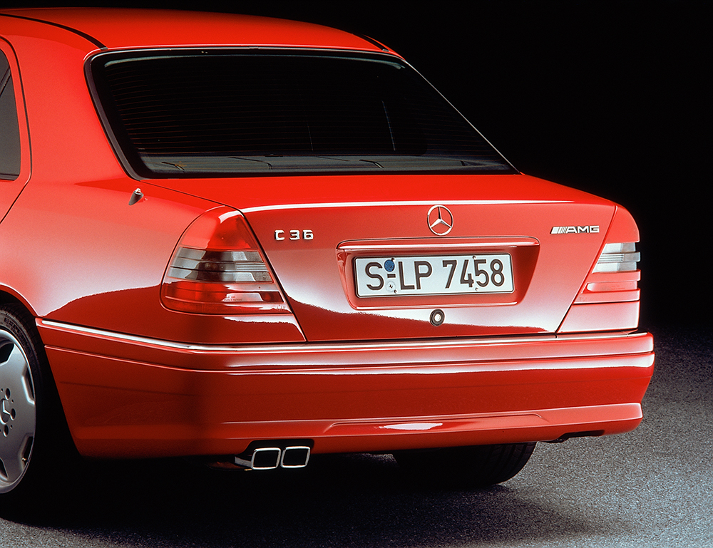 First shown at the 1993 Frankfurt Motor Show, the C36 AMG (in the W202 series) was also the first vehicle jointly developed by Mercedes-Benz and AMG after Stuttgart acquired a majority stake in the Affalterbach outfit. Based on the W202 C280 with Sport equipment line, the bore and stroke of the 2.8-litre in-line six-cylinder engine in the C280 were increased by AMG to give a displacement of 3.6 litres.