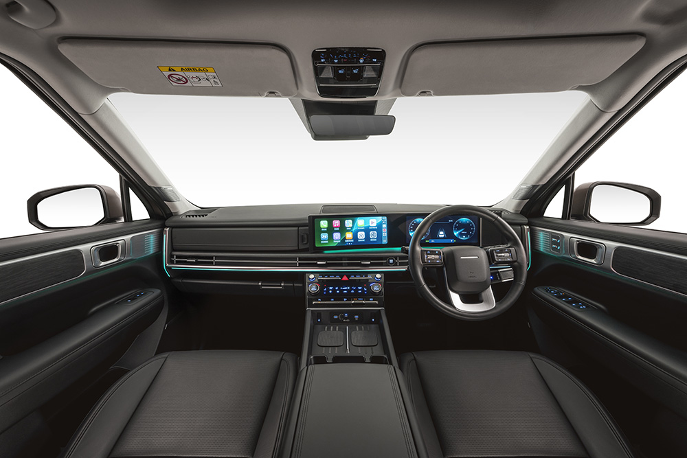 The new Santa Fe doesn’t hold back on technology. The infotainment system is feature-rich, with wireless Apple CarPlay and Android Auto, over-the-air software updates, and support for multi-device Bluetooth connections. The 12-speaker Bose sound system delivers excellent clarity, while ambient lighting and USB-C charging ports across all three rows further modernise the experience.