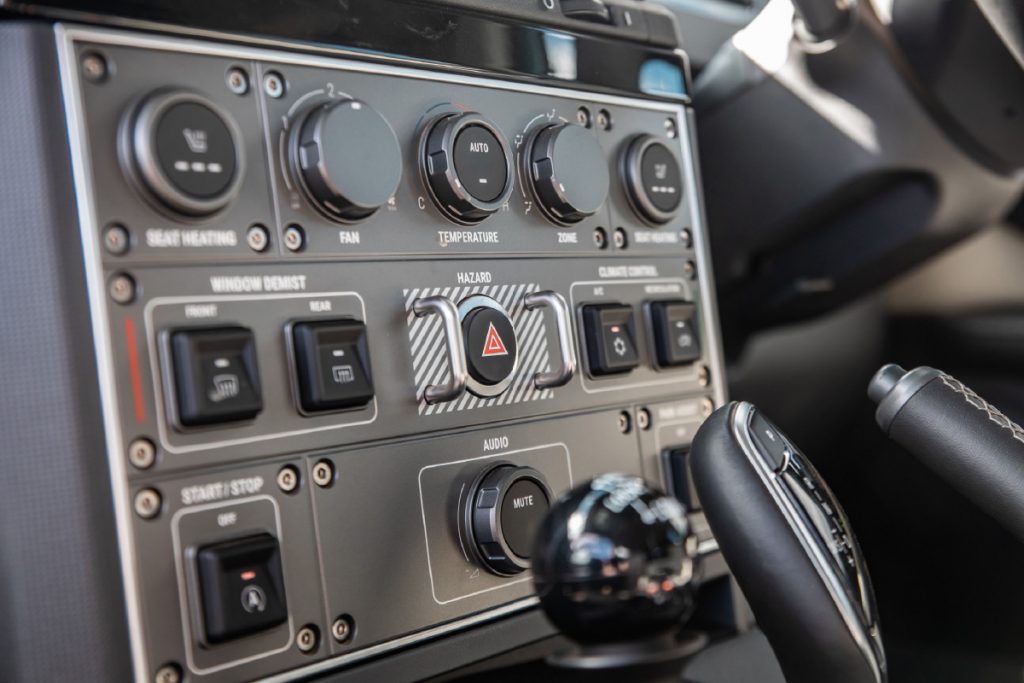 Inside, the front cabin has a cockpit-feel to it, with aircraft-style instrumentation (complete with guards to avoid accidental operation) in the centre console and a bank of toggle switches (for the off-road switch gear) in the overhead control panel. The buttons are clearly labelled and well-spaced, and all driving information is conveniently displayed on a centrally-positioned 12.3” touchscreen.