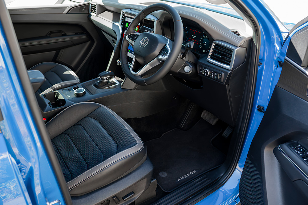 The rear legroom has been increased thanks to the longer wheelbase, and three adults can sit comfortably back there. The raised bench should also help car-sickness-prone passengers who need a view of the road ahead. Overall, the Amarok cabin is a lovely place that is befitting of the machine’s price.