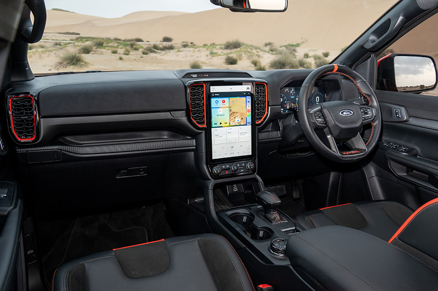 That said, the Raptor is positioned at the pinnacle of the Ranger line-up and boasts a rich array of features. Matrix LED headlights, electric and heated front seats, wireless smartphone charging, and a 360-degree camera contribute to its allure. The large touchscreen, complemented by a digital dial display of similar size, enhances the Raptor’s technological sophistication. These features, combined with an impressive off-road specification, make the Raptor an enticing choice for enthusiasts seeking a comprehensively equipped off-road machine.