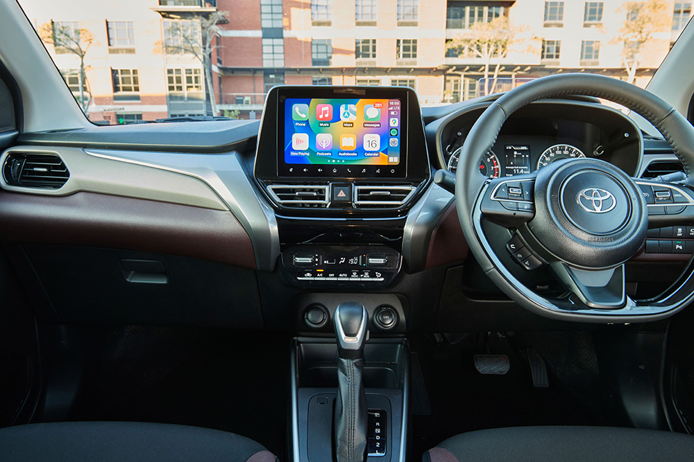 Overall, the Starlet Cross interior does not compromise on style or substance, featuring a tri-tone dashboard with premium finishes.