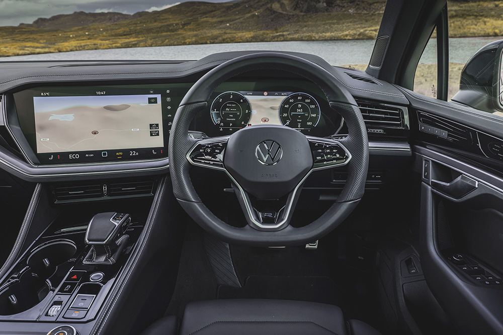 Our R-Line test model also featured attractive new alloy wheels and a new Volkswagen logo projection via the exterior mirror housings, providing surround lighting at night. The high-quality level of the Touareg interior has also been improved, with softer touch materials used for the centre console trims.
